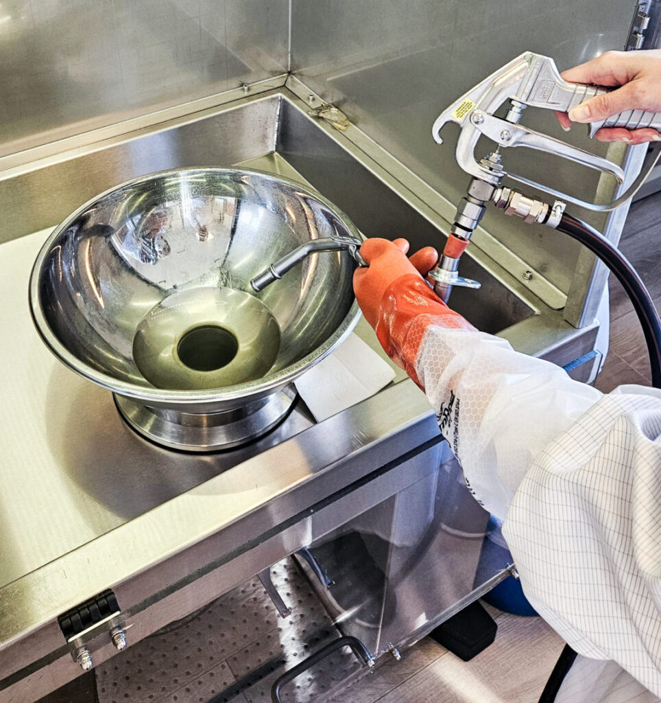 To achieve the right level, we work with several different cleanliness operations. Among other things, we use high-pressure washing for the toughest requirements, plug shooting to remove particles in hard-to-reach areas, and centrifugal washing for external requirements. All cleanliness-classified items are tested continuously, and our analyses include both weighing and counting particles per square centimetre. The results are documented in a clear report according to the customer’s wishes and always accompany the delivery.